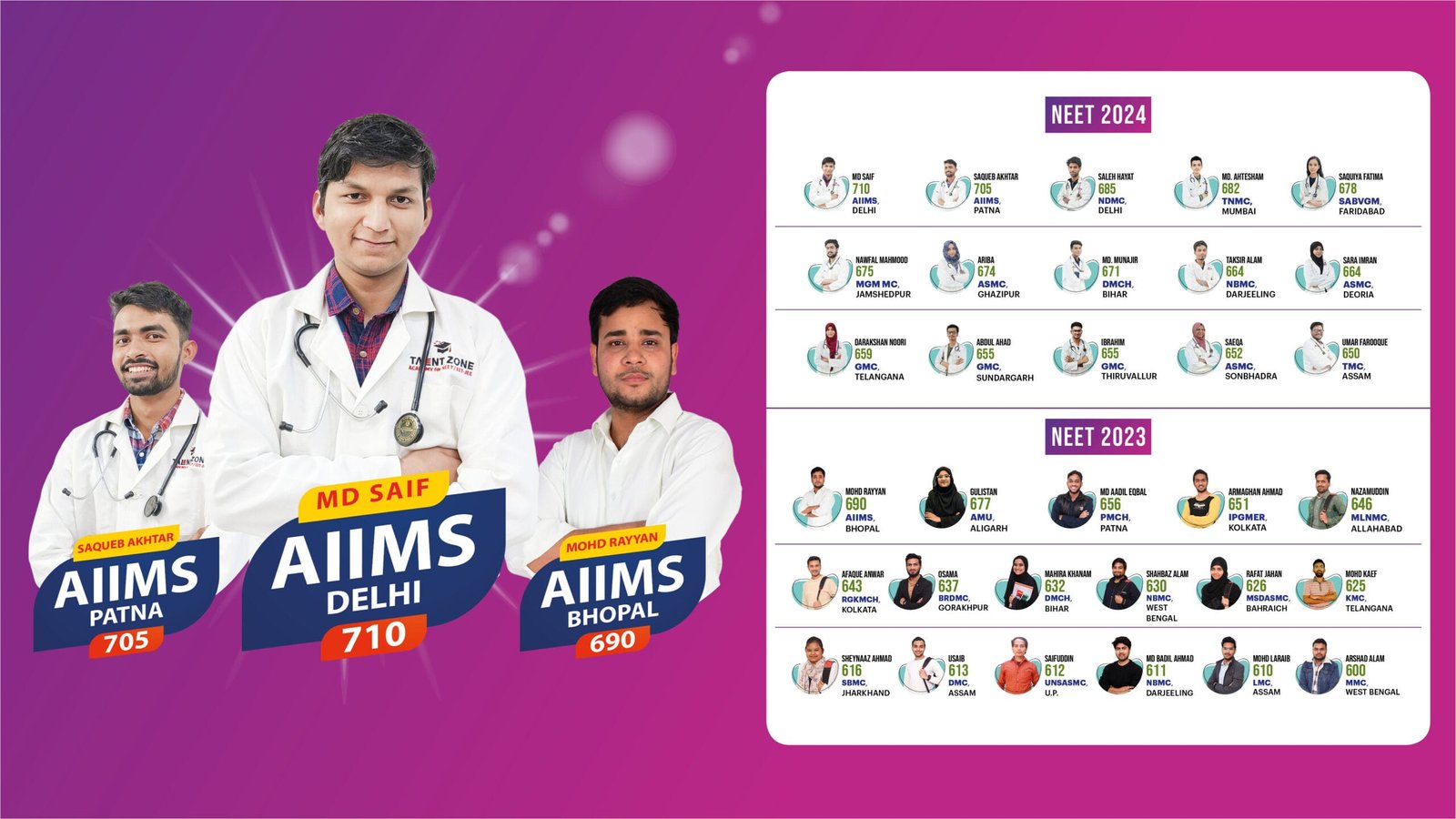 Talent Zone Academy Celebrates Stellar NEET 2023 & 2024 Results: AIIMS DELHI, AIIMS PATNA, AIIMS BHOPAL, AMU, PMCH,DMCH Etc.
